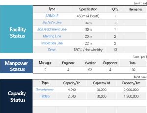 - 2,500 units/hour → 50,000 units/day → 1,300,000 units/month for Tactile Buttons