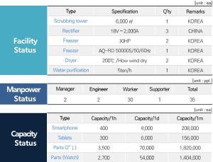 Our production capability allows us to meet the needs of various industries. The facility can process up to 208,000 smartphone components, 156,000 tablet parts, 1,820,000 pieces of 2-inch parts, and 1,404,000 watch components per month.