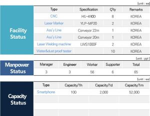 Our current production capability allows us to manufacture up to 100 smartphone units per hour, reaching 2,000 units per day and 52,000 units per month. This capacity makes the facility well-suited for high-volume production while maintaining exceptional quality standards.